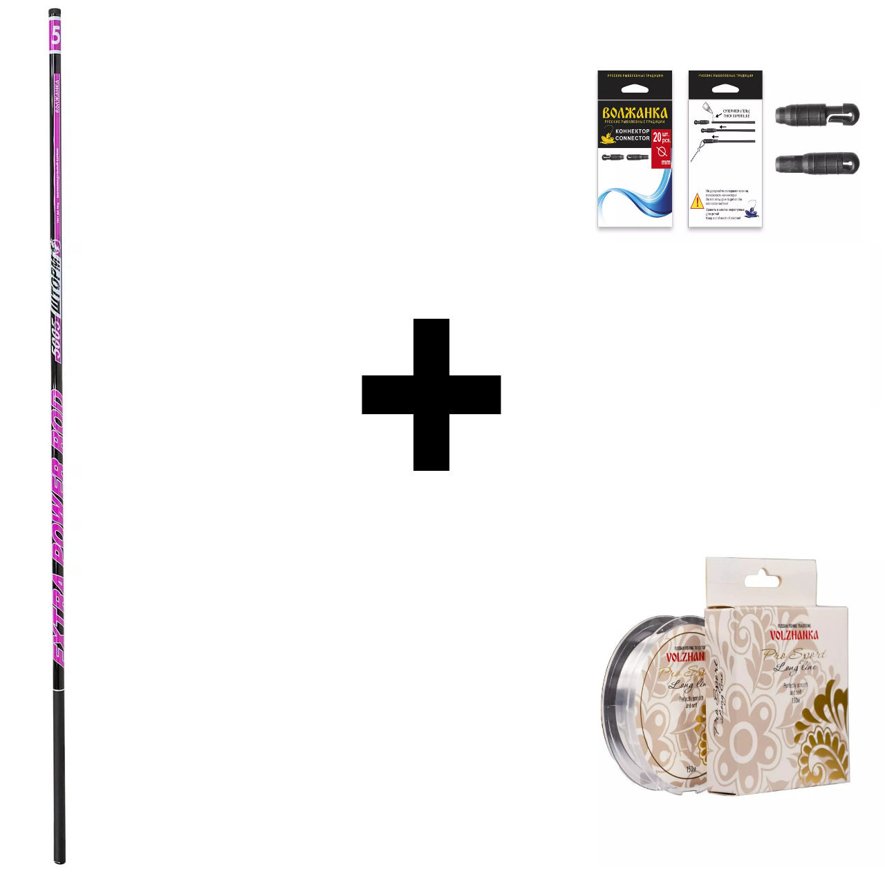 Комплект. Удилище б/к "Волжанка Шторм" 5.0м тест до 30гр (5 секций)+Коннектор "Волжанка" 1.2мм (20шт/уп)+Леска моно "Pro Sport Long Line" 150м/0.240мм 5.40кг цв. прозрачный