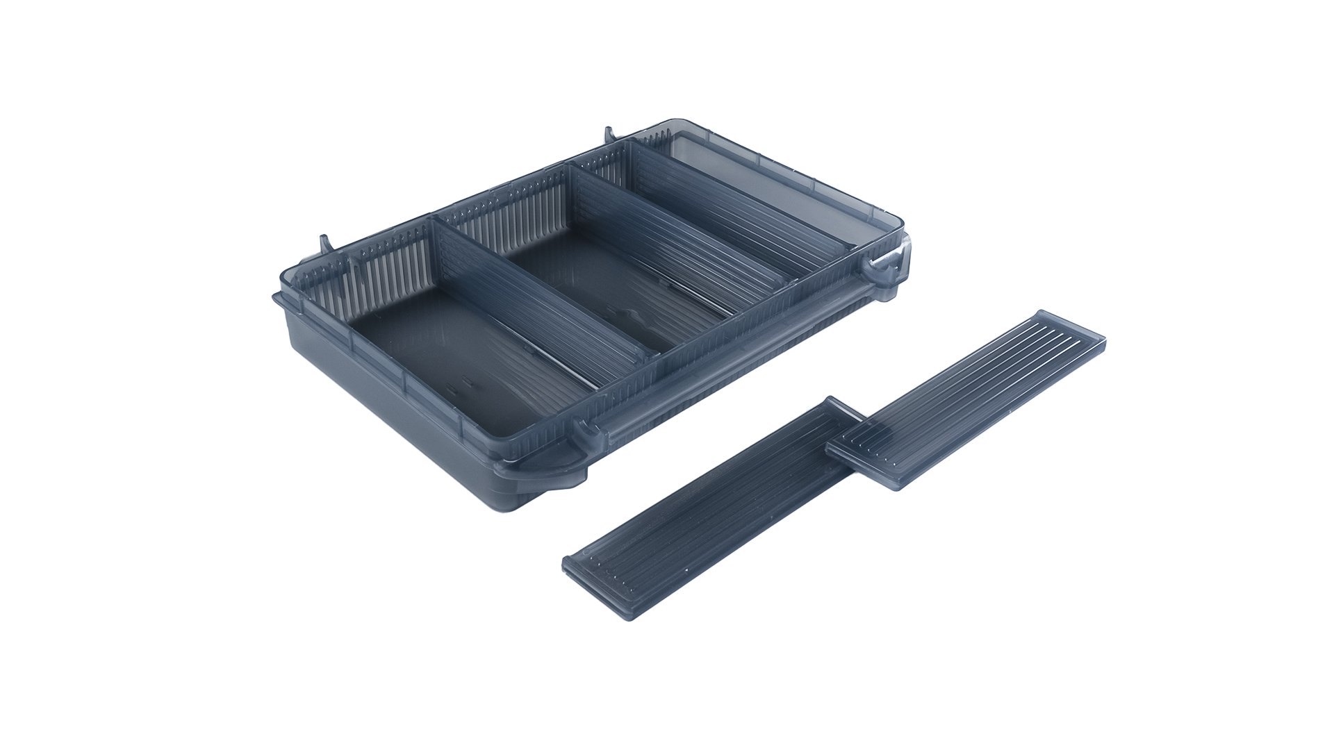 Фото демонстрирует общий дизайн продукции. Коробка предназначена для хранения различных видов приманок. Выполнена из прочного пластика.