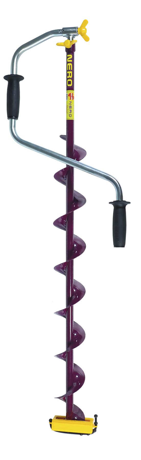 Фото демонстрирует общий дизайн продукции. Ее назначение и основные характеристики указаны в описании товара. Телескопическая версия ледобура NERO SPORT правого вращения, который пользуется популярностью не только у спортсменов, но и у поклонников активной ходовой ловли. Модель имеет более агрессивные углы наклона рабочих площадок, чем на обычных моделях NERO. Это повышает эффективность бурения, что немаловажно для спортивной или активной ходовой рыбалки. Еще одно отличие – скосы рабочих площадок, которые улучшают удаление ледяной крошки из рабочей зоны. Модель предназначена для бурения лунок диаметром 110 мм. В нижнюю секцию с цельнотянутым шнеком вставлена штанга, фиксирующаяся с ней шпилькой-барашком. Штанга соединяется с рукоятью надежным замком, защищенным авторским свидетельством. Ручки рукоятей помещены в «теплый» резиновый чехол. В комплекте ножи с винтами крепления и защитный чехол для головки ледобура. Межцентровое расстояние крепления ножей 16 мм. Ледобур, после замены штанги на переходник АТ-840 или АТ-560, можно использовать для бурения льда с помощью шуруповерта. Рекомендуем для регионов, где толщина ледового покрова не превышает 1,5 метра.